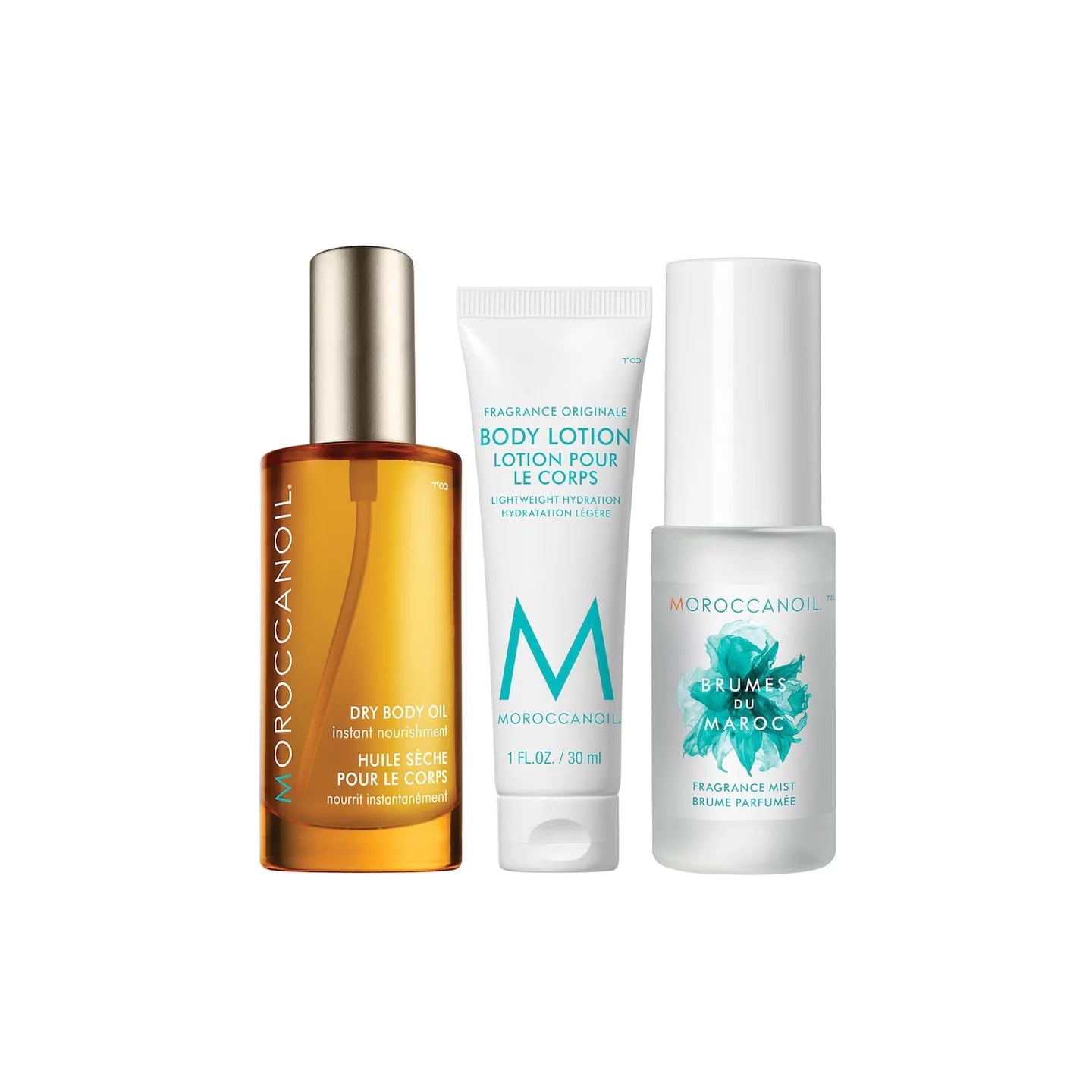 Un exclusivo set de viaje para vacaciones con los productos más vendidos para el cuidado corporal, todos con el aroma característico de Moroccanoil.